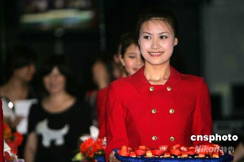 圖:15位準(zhǔn)空姐北京演練奧運(yùn)頒獎(jiǎng)儀式 (5)