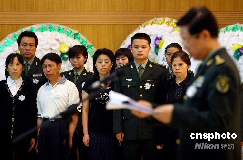 失事直升機遇難烈士家屬出席追悼大會。中新社發 賈國榮 攝