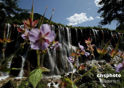 諾日朗瀑布群風景區青山綠水和旅游設施依然完善如初。中新社發 賈國榮 攝