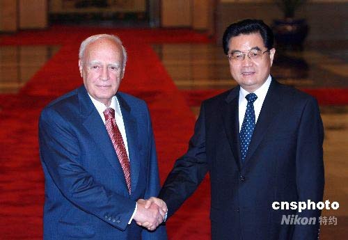 6月23日,中國國家主席胡錦濤在北京人民大會堂舉行儀式歡迎希臘總統(tǒng)帕普利亞斯訪華。中新社發(fā) 廖文靜 攝