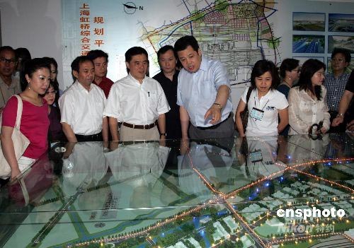 6月24日,臺北市長郝龍斌專程考察上海虹橋綜合交通樞紐工程,意在建立臺北松山機場至上海虹橋機場新直航點,共同形成“兩小時經濟圈”。中新社發 潘索菲 攝