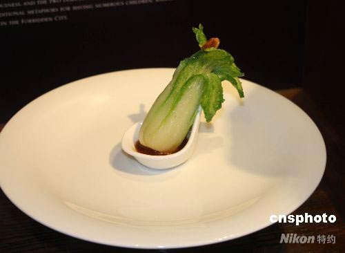 圖為“國寶宴”第一道菜“翠玉白菜”。