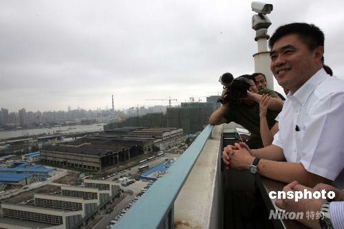 6月26日,臺北市市長郝龍斌在滬考察正在建造中的上海世博會參展場址、了解世博會籌備情形,并俯瞰建造中的上海世博會全景。中新社發(fā) 潘索菲 攝