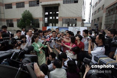 郝龍斌在考察后,向記者表示,非常滿意上海世博局對臺北“兩項成果”的安排。中新社發 潘索菲 攝