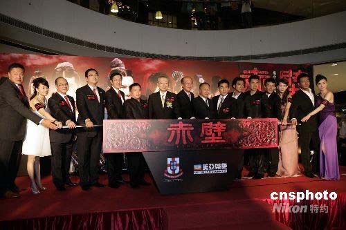 六月三十日晚,由吳宇森導(dǎo)演的電影《赤壁》在香港舉行慈善首映,特區(qū)教育局局長孫明揚、東華三院董事局成員及美亞娛樂咨詢集團公司代表、劇中主要演員張豐毅、金城武、張震、梁朝偉、林志玲、胡軍、宋佳等出席。中新社發(fā) 王麗南 攝