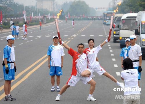 圖:楊凌火炬手擺優美造型傳遞"祥云"