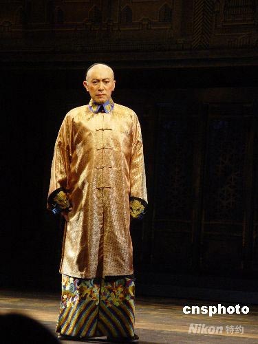 圖為在話劇中扮演光緒皇帝的香港著名舞臺劇導演毛俊輝。他上次登臺演出的就是1998年的《德齡與慈禧》,這次是十年后再度出演劇中“光緒皇帝”。中新社發 應妮 攝