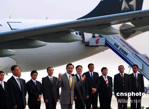 圖:北京有關人士首都機場歡送赴臺旅游團