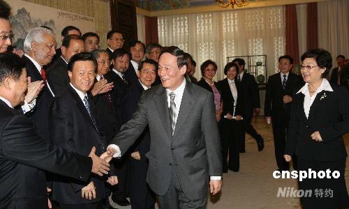 7月7日,中國國務院副總理王岐山在北京中南海紫光閣會見了由中國國務院僑務辦公室主任李海峰率領的“知名僑資企業家四川行”代表團一行。 中新社發 王瑤 攝