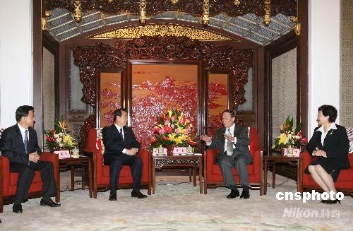 7月7日,中國國務院副總理王岐山在北京中南海紫光閣會見了由中國國務院僑務辦公室主任李海峰率領的“知名僑資企業家四川行”代表團一行。中新社發 王瑤 攝