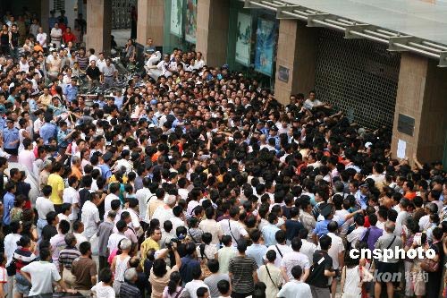 10元面值的可等值流通貨幣北京奧運紀念鈔迅速在民間刮起了一股收藏旋風,掀起了全民收藏熱情。7月9日,面值10元的奧運紀念紙幣在南京的8家定點銀行發行。位于三元巷的一家定點銀行門前聚集了數百市民,現場有數十警察維持秩序。中新社發 彭增權 攝