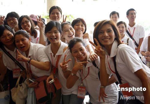 7月11日,臺(tái)灣學(xué)生在上海興高采烈地迎接夏令營(yíng)開營(yíng)。當(dāng)日,“龍脈相傳緣聚上海——臺(tái)胞青年夏令營(yíng)”在上海開營(yíng),來(lái)自臺(tái)灣政治大學(xué)、成功大學(xué)、海洋大學(xué)、佛光人文學(xué)院的同學(xué),以及在滬的臺(tái)生、臺(tái)籍青年等百余人參加。中新社發(fā) 潘索菲 攝