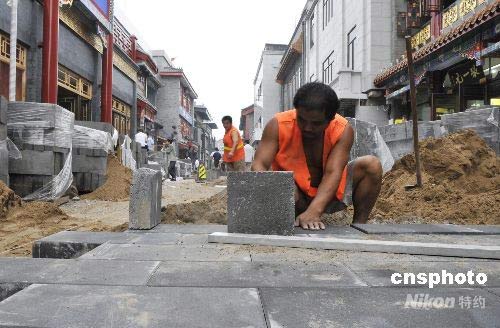 前門大柵欄步行街緊鑼密鼓的開始了道路鋪設(shè)作業(yè)。屆時,古老的大柵欄步行街將煥然一新面向海內(nèi)外游客。中新社發(fā) 王宇婷 攝