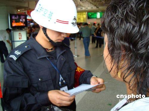 七月二十一日上午,昆明市內發生兩起公交車爆炸案,導致二人死亡,十四人受傷。目前云南省交通、鐵路、民航公安機關加強了相關安全防范措施。邊防部隊已部署各邊境口岸、通道的管控工作,加強對嫌疑人員盤查檢查,力爭發現線索查獲犯罪嫌疑人,防止犯罪嫌疑人逃往境外。圖為昆明機場安保人員正在執行安全檢查工作。中新社發 楊洋 攝