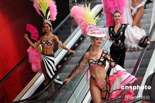 7月24日下午,法國(guó)巴黎著名的麗都夜總會(huì)的舞娘在巴黎老佛爺百貨男裝館,為游人和顧客獻(xiàn)上風(fēng)情萬種的火辣演出,為巴黎老佛爺百貨公司在今夏七月推出的特別促銷活動(dòng)助陣。中新社發(fā) 王倩 攝