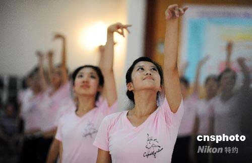 圖:奧運(yùn)頒獎(jiǎng)禮儀志愿者結(jié)業(yè)匯報(bào)演出