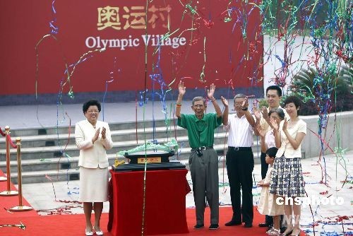 7月27日,北京奧運會的運動員之家——奧運村正式開村,來自205個國家和地區(qū)的16000名運動員和隨隊官員將逐步入住。在儀式上,中國全國人大常委會副委員長、北京奧組委副主席、北京奧運村村長陳至立和北京市民代表共同為一枚“如意”揭幕,代表全體北京市民對北京奧運會、北京奧運村以及全體運動員、教練員、官員的一份吉祥美好的祝福。中新社發(fā) 杜洋 攝