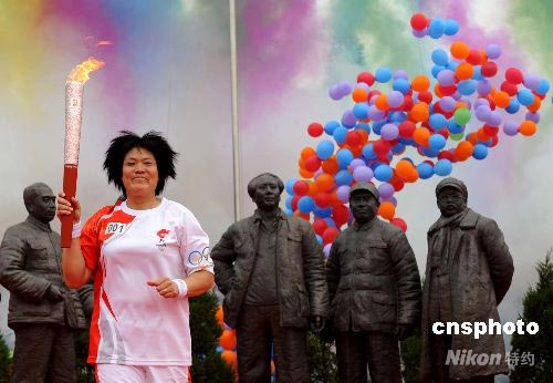 7月29日上午,奧運火炬開始在石家莊傳遞,起跑點設在“新中國從這里走來”的革命圣地西柏坡。八點十分,西柏坡紀念館廣場前,中國田徑名將李梅素從河北省委書記張云川手中接過“祥云”拉開了奧運火炬接力石家莊站傳遞序幕。西柏坡二十棒火炬手傳遞完成后火炬由汽車轉場至市區繼續傳遞。 中新社發 廖攀 攝