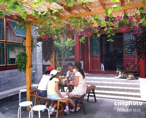 圖為首戶獲得“奧運人家”青花瓷盤標志的家庭——北京什剎海南官房胡同39號。 這座典型的北京民居,雕梁畫棟,整潔清新,院中的石榴樹和牡丹花透著勃勃生機,蟈蟈在竹籠里歡快地叫著。游客們圍坐在石桌前聆聽主人敘述這座四合院的來歷:“四合院由東、南、西、北四面的房間圍合而成,里面是一個中心庭院,已有兩千多年的歷史。古代,正房中間的椅子是專門給長輩坐的,因為父母是家里最受尊敬的人。父親坐在左邊,母親坐在右邊。”家庭講解員們不停地向前來參觀的國內(nèi)外游客講述這座院落的歷史。 據(jù)介紹,自從被評為首個“奧運人家”以后,國內(nèi)外各地的游客紛至沓來,前來參觀的游客人數(shù)驟增,于是親戚們便自發(fā)來幫忙,目前家里的工作人員有十幾人,其中有三個人的英語都是六級,奧運會期間,這三個人將會請假專職在四合院為來訪的奧運賓客服務(wù)。