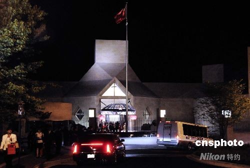 中國駐美國大使館新館當地時間七月二十九日在華盛頓開館,由著名華裔建筑設計師貝聿銘設計,中國建筑總公司、上海建工集團、中國中元國際工作公司、中國日林建設集團承建的駐美國大使館新館,時尚、大氣。圖為開館當晚的夜景。中新社發 邱江波 攝