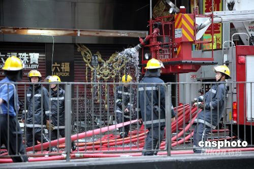 十日上午九時許香港旺角嘉禾大廈發(fā)生五級火警,焚燒了近六個小時的大火在下午三時許救熄,火警中兩名消防員殉職,一名老婦死亡,另五十六人受傷。中新社發(fā) 洪少葵 攝