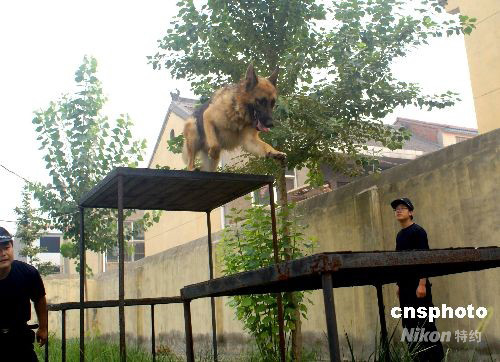 河南省濟(jì)源市刑警支隊(duì)舉行“警犬反恐演練”活動(dòng)。警犬在刑警的帶領(lǐng)下進(jìn)行了穿越障礙、追捕逃犯、嗅覺鑒別等一系列反恐演練科目,大大強(qiáng)化了警犬進(jìn)行反恐實(shí)戰(zhàn)的能力。中新社發(fā) 平白 攝