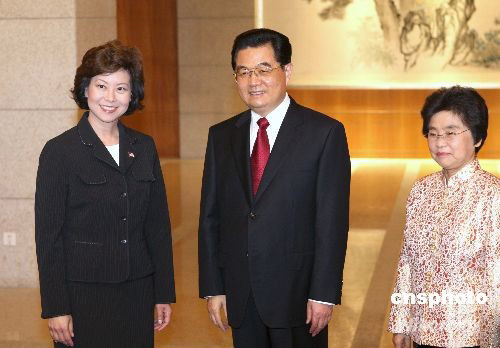 胡錦濤夫婦歡迎出席閉幕式的美國勞工部長趙小蘭