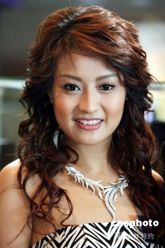 九月十八日,應屆香港小姐亞軍陳倩揚應邀到“香港珠寶鐘表展”上,為香港珠寶制造業廠商主辦的“2008首飾設計比賽”擔任評判。圖為陳倩揚展示項鏈設計款式。中新社發 洪少葵 攝
