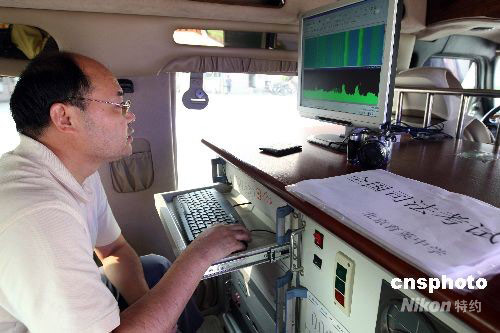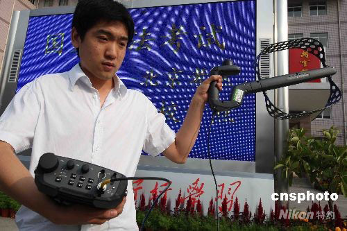 北京市司法局與北京市無(wú)線電管理局等按照“人防”與“技防”相結(jié)合,采用新型的技術(shù)設(shè)備--無(wú)線耳機(jī)探測(cè)器和全功能考場(chǎng)信號(hào)擾斷儀配備給考點(diǎn)。對(duì)疑似利用無(wú)線電通訊設(shè)備作弊或與考場(chǎng)外無(wú)線電通訊設(shè)備串通作弊的信號(hào)進(jìn)行監(jiān)測(cè),必要時(shí)采取技術(shù)手段予以阻斷。對(duì)已經(jīng)確認(rèn),情況屬實(shí),違反治安管理規(guī)定或涉嫌犯罪的,交由公安機(jī)關(guān)依法查處。中新社發(fā) 任海霞 攝
