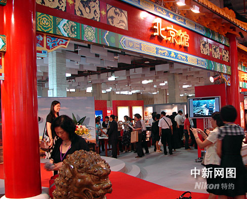 主賓城市北京的主題是“閱讀新北京 感受新北京”,展區(qū)入口卻是古樸典雅。