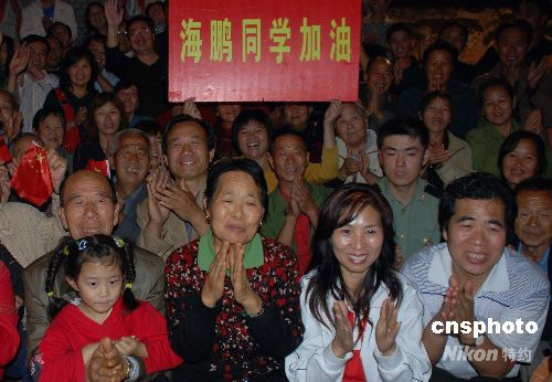 景海鵬家鄉(xiāng)父老觀看"神七"升空電視直播