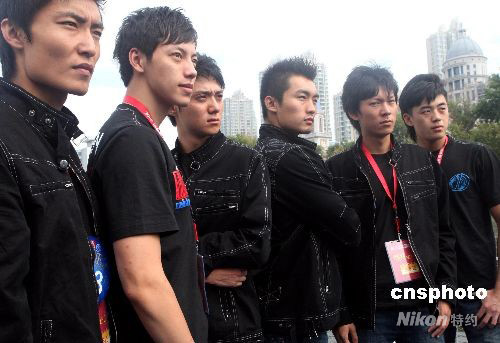 9月27日,正在天津參加“2008東麗湖世界最佳模特大賽中國區總決賽”的50名男女選手,乘游船游覽天津市區新貌,海河風光。圖為參賽男模特在船上拍照。中新社發 錢興強 攝