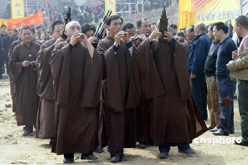 十月七日,少林寺下院--河南新密超化寺舉行大雄寶殿奠基法會(huì),僧侶居士吹奏起“超化吹歌”,使今人又能聆聽到原汁原味的佛教梵樂(lè)。吹歌大約起源于中國(guó)四千多年前的夏商時(shí)期。中新社發(fā) 李志全 攝