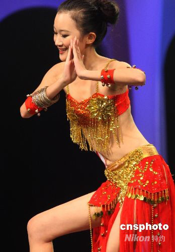 10月8日晚,2008亞洲小姐京津地區選拔賽在天津舉行。圖為參賽佳麗展示才藝。中新社發 錢興強 攝