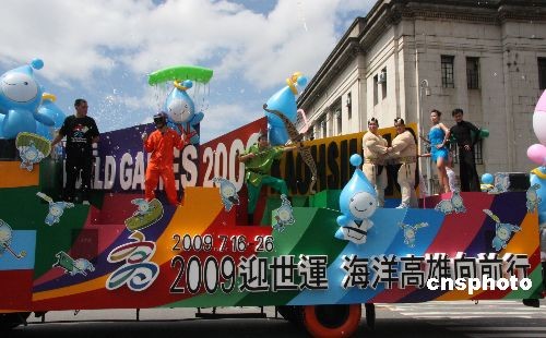 圖為臺灣高雄市布置的花車在為二00九年舉辦的世運會做宣傳。中新社發 耿軍 攝