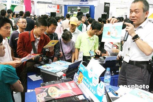 2008年10月16日,在蘇州國際博覽中心開幕的以“綠色科技、數(shù)字生活”為主題的第七屆中國蘇州電子信息博覽會上,許多參展企業(yè)豐富多彩的促銷活動,引人入勝,成為該展會上的一大亮點。 中新社發(fā) 蘇秀 攝