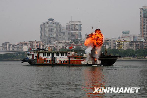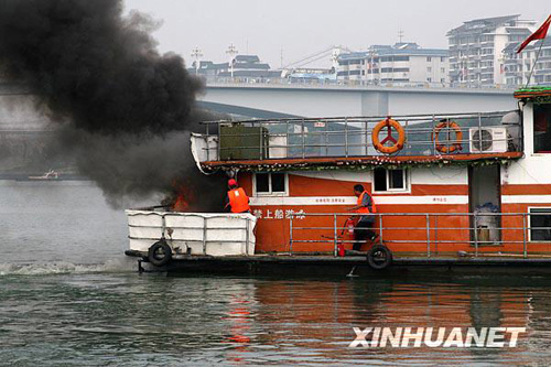 10月20日,一艘載有40名旅客的客船模擬與裝運硫酸的液貨船發(fā)生碰撞,造成客船機艙起火爆炸。 當日,廣西迄今最大規(guī)模內河水上搜救演習在柳州市柳江河段舉行,演習完成了旅客疏散、船舶滅火、污染控制等課目演練,數(shù)百人、30多艘救援船舶參加。演習旨在完善水上突發(fā)事件應急反應聯(lián)動機制,為廣西水上交通營造安全氛圍、提供安全保障。