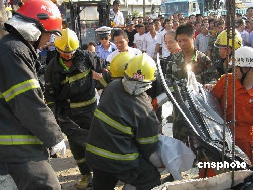 圖:寧波一滿載泥土貨車側翻壓死轎車司機(2)