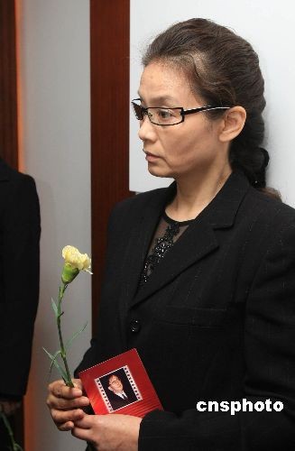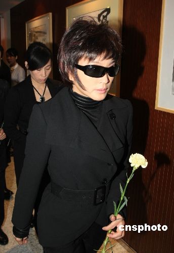 曾在謝晉導(dǎo)演拍攝的電影《芙蓉鎮(zhèn)》里出演女主角的劉曉慶前來送別一代電影大師。中新社發(fā) 湯彥俊 攝