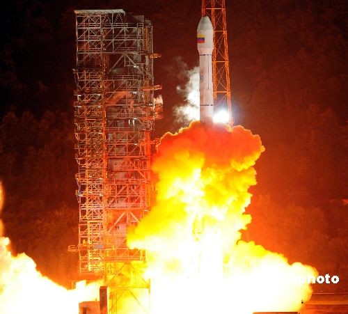 北京時間三十日凌晨零時五十三分,中國在西昌衛(wèi)星發(fā)射中心用“長征三號乙”運載火箭,將“委內(nèi)瑞拉一號”通信衛(wèi)星成功送入預(yù)定軌道。這是中國首次向拉丁美洲用戶提供整星出口和在軌交付服務(wù)。中新社發(fā) 孫自法 攝
