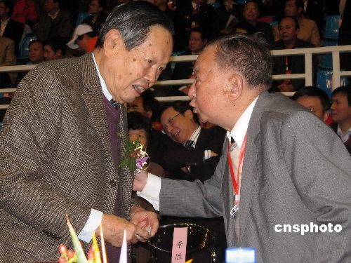 11月1日,在西南聯大在昆建校70周年紀念大會上,諾貝爾獎獲得者楊振寧與錢學森弟子、中國控制論與人工智能專家戴汝為院士相談甚歡,共敘友情。
