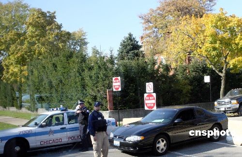 11月4日美國大選全民投票日,民主黨總統候選人奧巴馬位于伊利諾伊州芝加哥南部的住宅周圍安保措施十分嚴格。住宅周圍不僅有禁止通過和停車的標志,還有警員把守。中新社發 李靜 攝