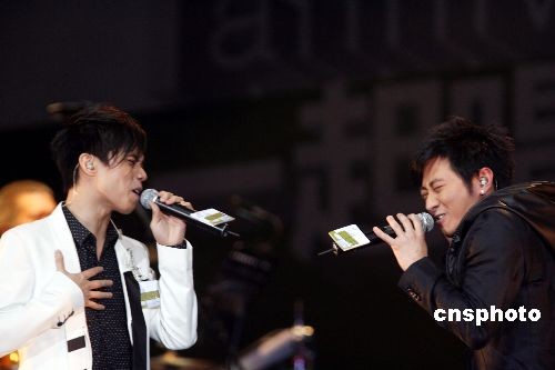 圖為張敬軒、孫耀威傾情演唱。中新社發 武仲林 攝