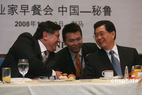 胡錦濤與秘魯總統(tǒng)加西亞出席企業(yè)家早餐會(huì)