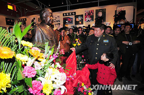 11月23日,毛岸青的兒子毛新宇、孫子毛東東在毛岸青紀(jì)念館開(kāi)館儀式上為毛岸青夫人邵華將軍的銅像揭幕。