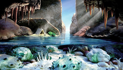 神秘洞穴由花椰菜、角瓜和蝸牛構成海底世界,而稻米和意大利粉形成暗礁。在此洞穴里,胡蘿卜從面包巖石懸掛下來充當石鐘乳。