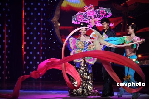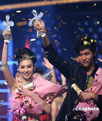 日前,2008第九屆CCTV模特電視大賽緊張進(jìn)行。經(jīng)過激烈的爭奪曹軼霖和李昕岳分別奪得該賽男女冠軍。本次總決賽暨頒獎晚會還獨(dú)具匠心地引入了“非物質(zhì)文化遺產(chǎn)”中的中國元素。中新社發(fā) 廖攀 攝