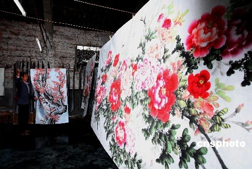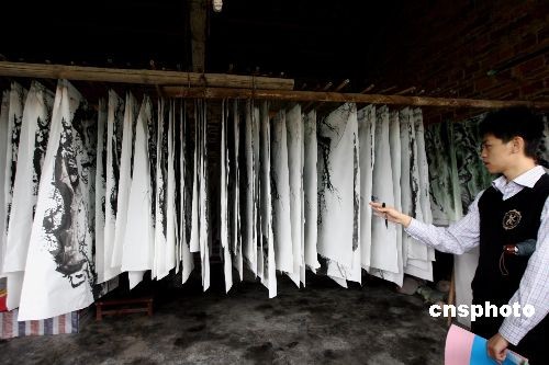 圖為今冬農民畫師晾曬的國畫。中新社發 王麗南 攝