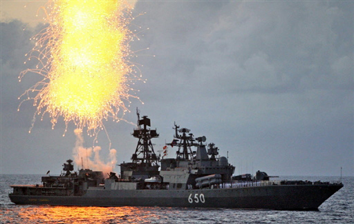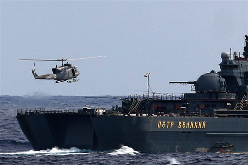 12月2日,在委內(nèi)瑞拉境內(nèi)的加勒比海域,俄羅斯“恰巴年科海軍上將”號大型反潛艦與“彼得大帝”號核動(dòng)力導(dǎo)彈巡洋艦參加委內(nèi)瑞拉和俄羅斯舉行的海上聯(lián)合軍演。 委俄兩國于12月1日至3日在加勒比海舉行代號為“委俄2008”的聯(lián)合軍事演習(xí)。