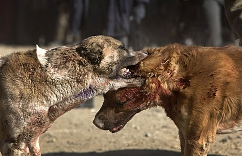 近日,阿富汗舉行了斗狗比賽,數(shù)千名當(dāng)?shù)厝司奂诳Σ紶柦纪庥^看該項(xiàng)比賽。